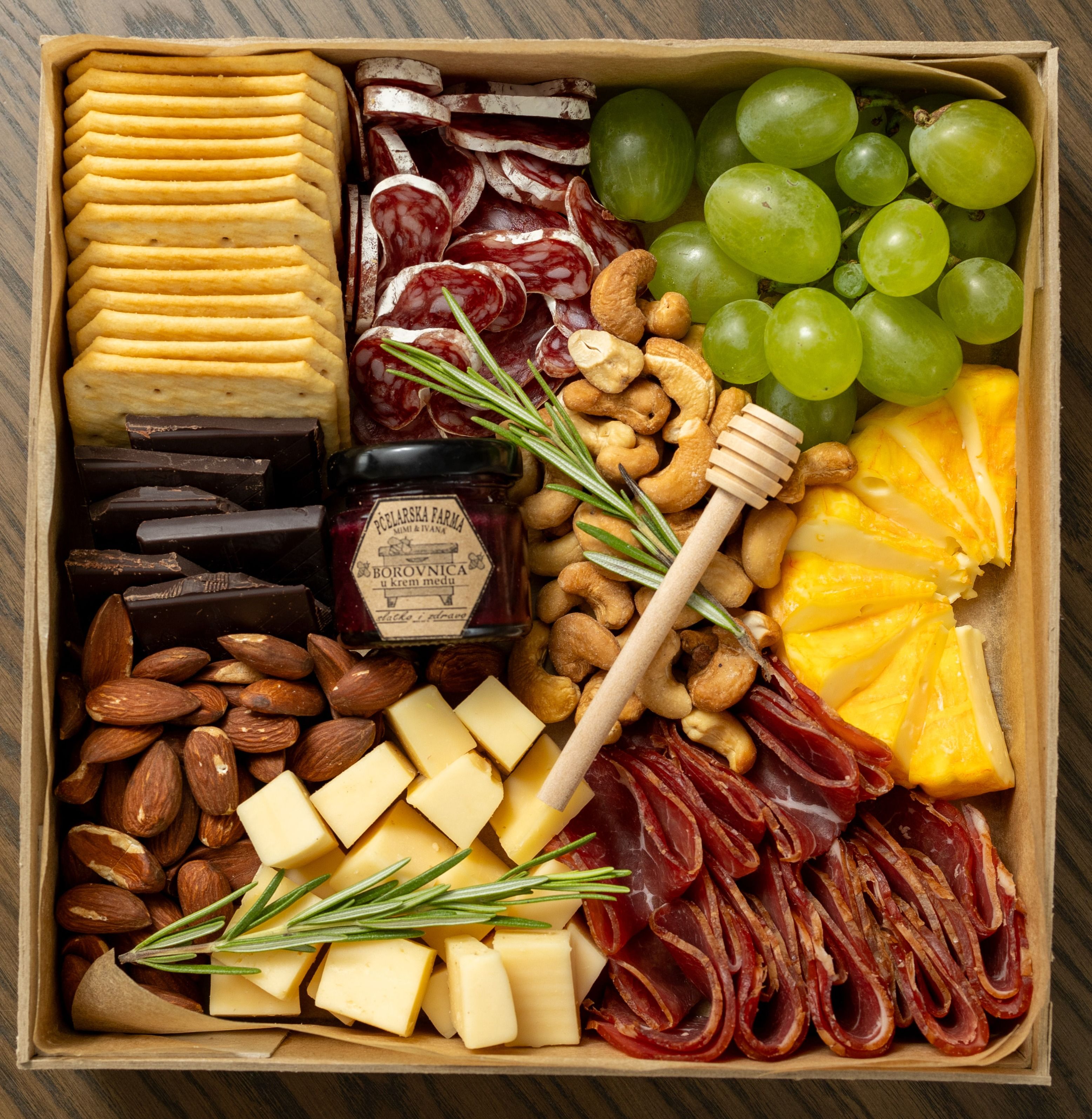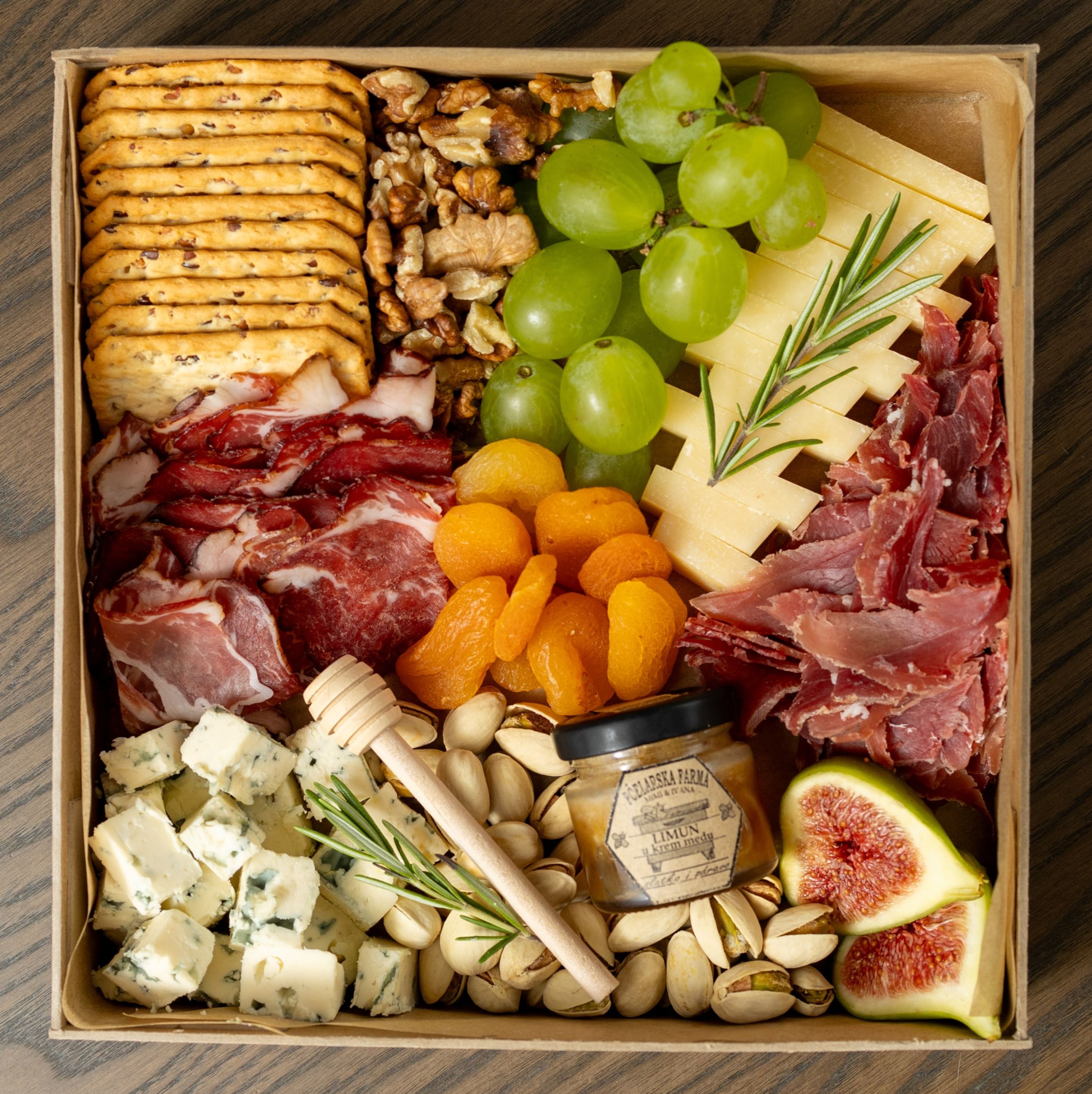 Naša kutija je savršen izbor za ljubitelje gurmanskih zalogaja, idealna za uživanje uz vaše omiljeno vino. Poručite vašu kutiju sada i prepustite se kulinarskom putovanju.